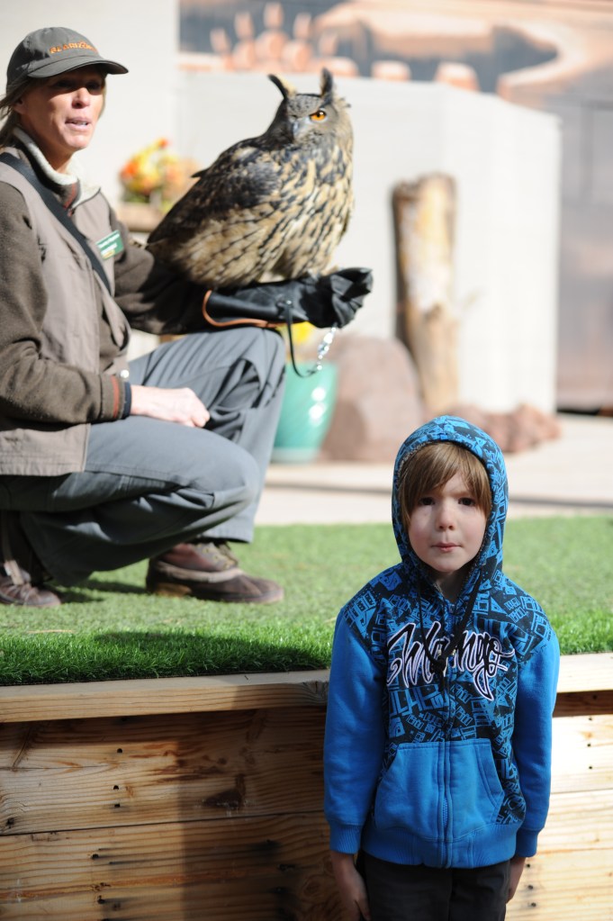 – the bird show where a Great Owl’s talons only just missed Zac’s head when he flew over u.