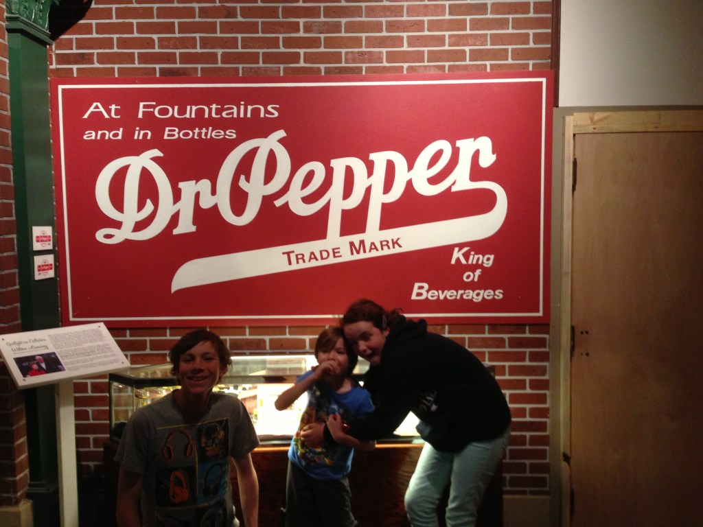 We without event to Waco, straight to the Dr Pepper Museum, where Zac had chosen to go for his birthday. It was a really well done place. The guy who ran the company ( named Foot) is quite a personality. Some of the first ads for Dr Pepper were atrociously cheesy!