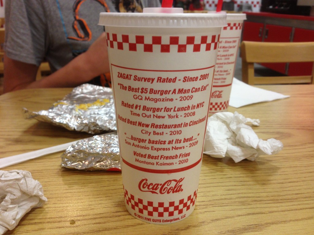 We had decided on 5 Guys for dinner. It was just as the reviews promised. Tasty burgers and the twice fried fries were so flavoursome.