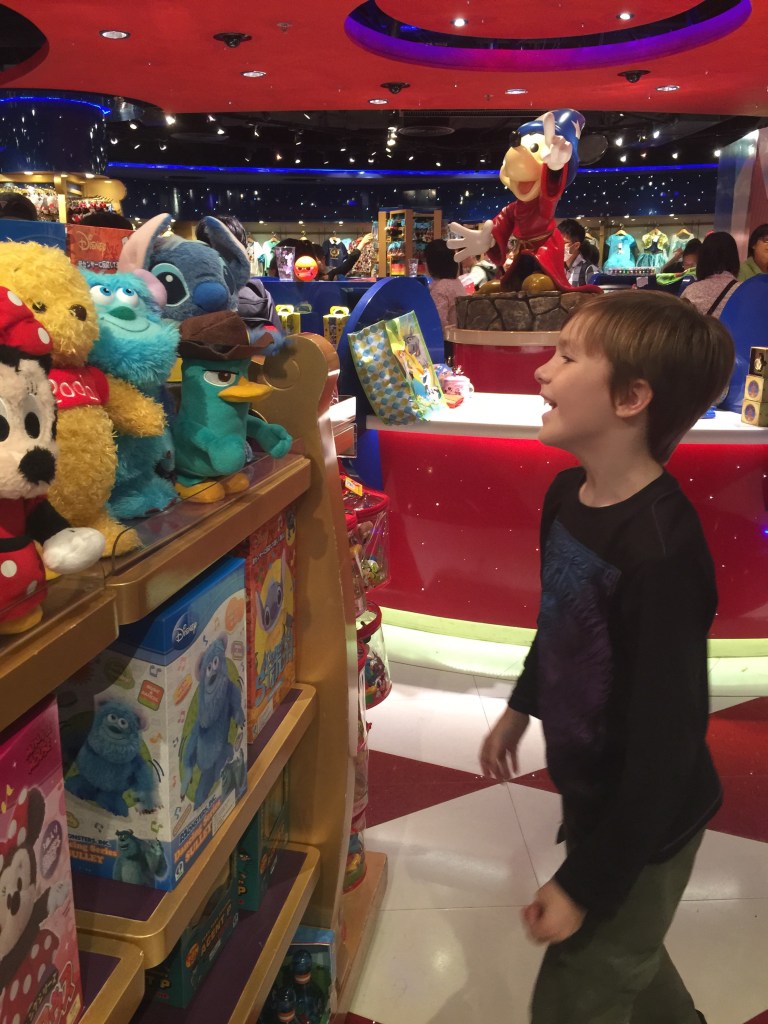We popped in to the Disney shop and scared ourselves by setting off the dancing, voice-activated Mickey Mouse and Minnie. Unfortunately Mickey was too close to Minnie and every time he danced he would push poor Minnie’s skirt up in a most un-Disney-like fashion!