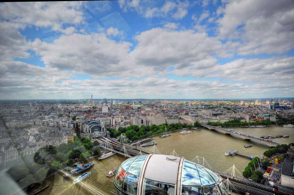 Every time I looked up at the London Eye from a distance, it looked stationary. But the wheel with its 38 pods (representing the 38 boroughs of London) rotates fully once every half hour. The London Eye rakes in 32,000 English pounds an hour! No wonder it stayed put! The views from the pod started out awesome and just got better and better!