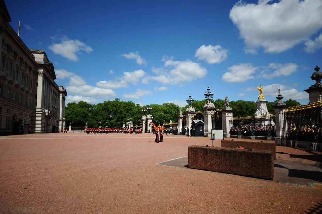 We continue to enjoy the efficiency of the London tube. After a lazy wake up this morning, we headed in with the masses to see the changing of the guard at Buckingham Palace. We snatched up the last patch of gate to press our faces against. From then on, everyone else piled in behind us front-rowers. Police came by warning us about thieving, so we secured our backpacks.