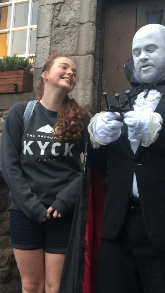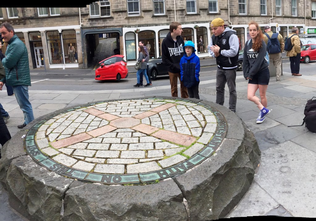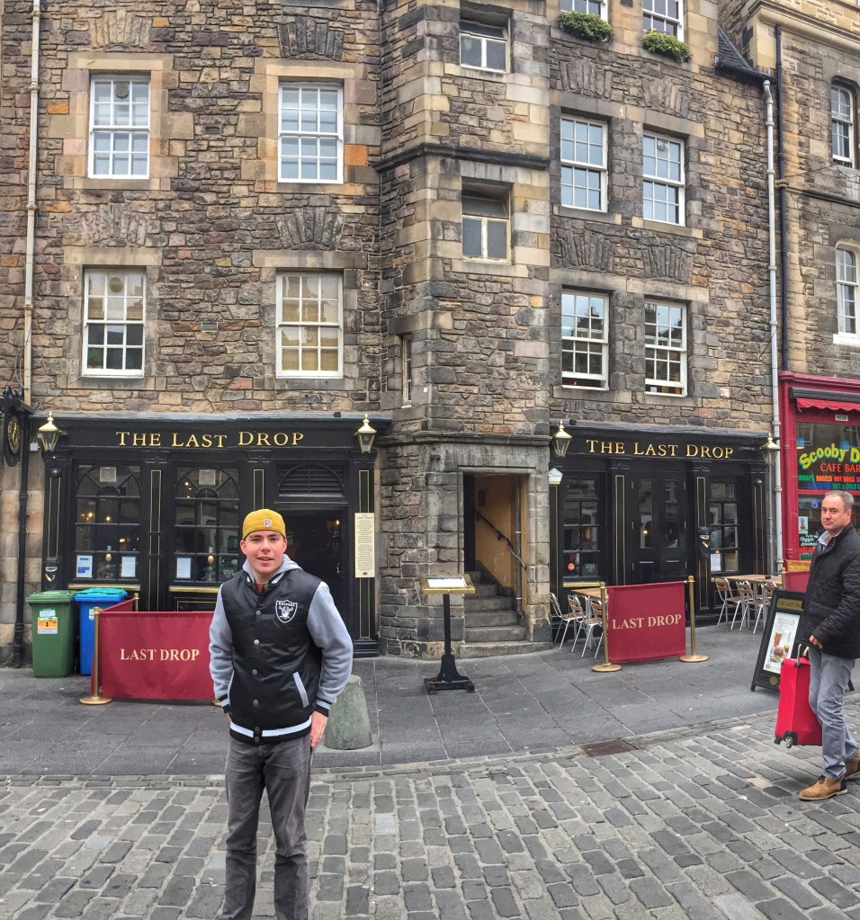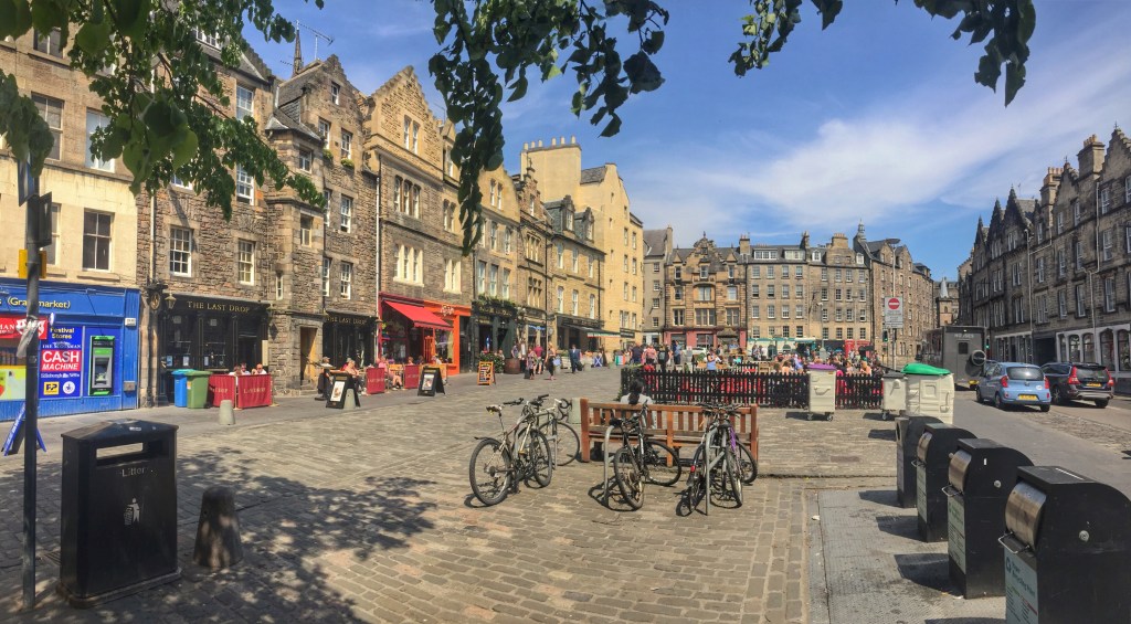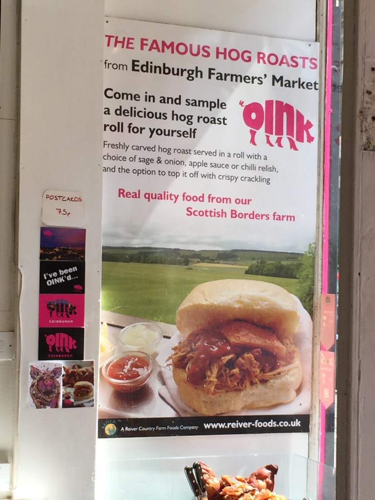 There is not much sitting space to enjoy one’s pork roll at Oink’s location so we took them over to a shady bench at Grassmarket. Grassmarket is a market place, but really a strip of picturesque pubs and a lively spot to people watch. Public executions were carried out here back in the day!