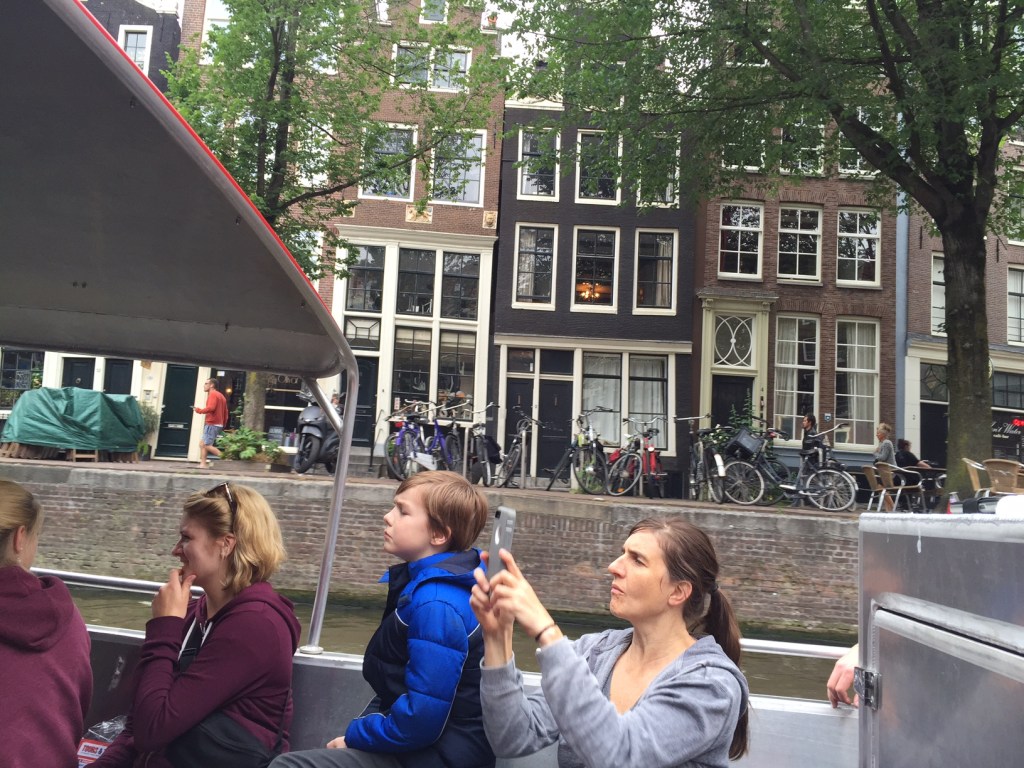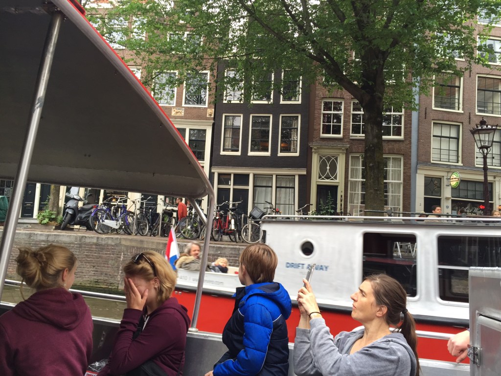 The canal tour was beautiful because Amsterdam canals are beautiful, but the commentary was not great. I noticed a few of our crew nodding off and realized that fatigue and the 10 yr old’s cold would probably make an afternoon trip to Zaanse schans a torturous experience. Hence, I mentally eliminated it from the itinerary.