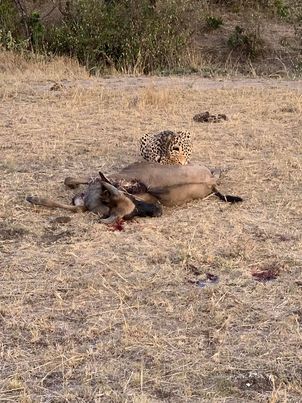 I won’t bore you with the blow by blow. Soon after entry we came upon a cheetah still out of breath from chasing down and killing a young wildebeest minute’s ago. It lay next to its meal, panting for about 10 minutes before getting up and staying to feast.