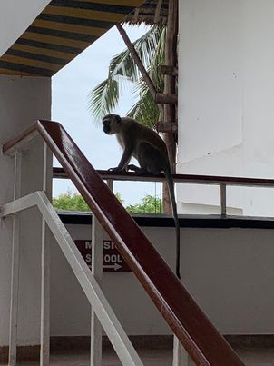 Our fun afternoon finished on an African moment when a monkey swooped down to drink from the pool at closing time.