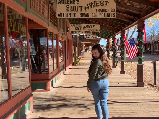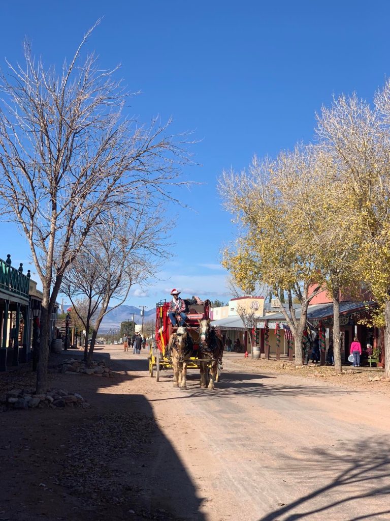 Wyatt Earp, his brothers and Doc Halliday were striding up main street in their long black frock coats, and a stagecoach driven by a wizened-up Santa with a long stringy ponytail, giving a tour in the most amazingly deep and thrilling tones rumbled towards us.