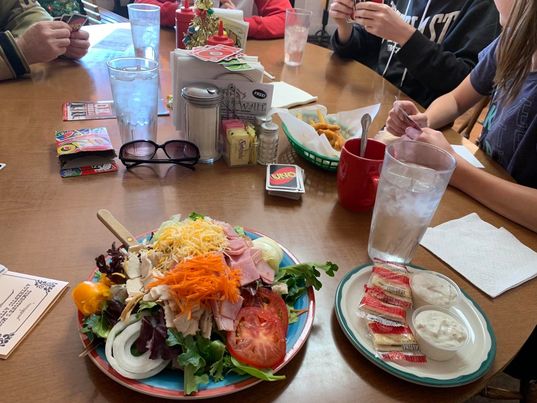 The food came out before we finished our game, it was filling and tasty. Check out my salad- biggest salad I have ever gotten!