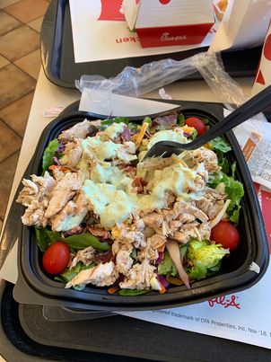 Time to kill? Can’t kill time at a better place than Chick-fil-A. It was delicious, we ate it in honor of you, Dana! Their sugar free homemade lemonade is the BEST! I had some delicious salad with the most amazing avocado lime dressing.