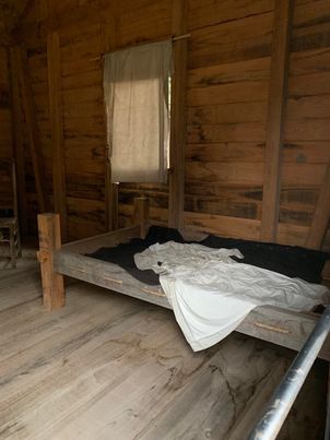 The real slave quarters fell apart and had to be destroyed. This is a recreation made from photos and writings.