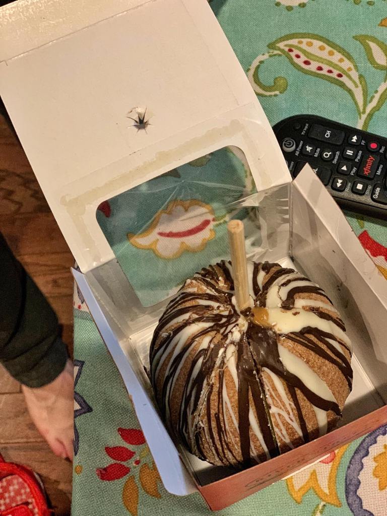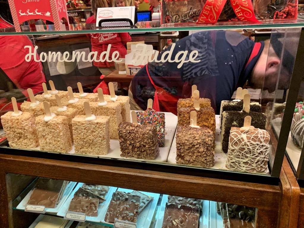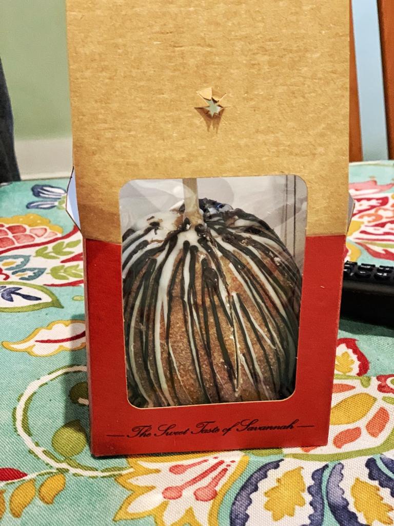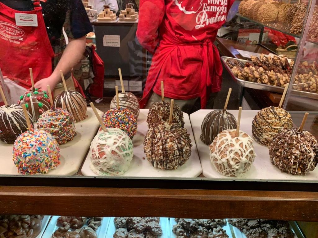 We decided on a huge Christmas flavored caramel apple and some Butterfinger fudge to share when we got home.