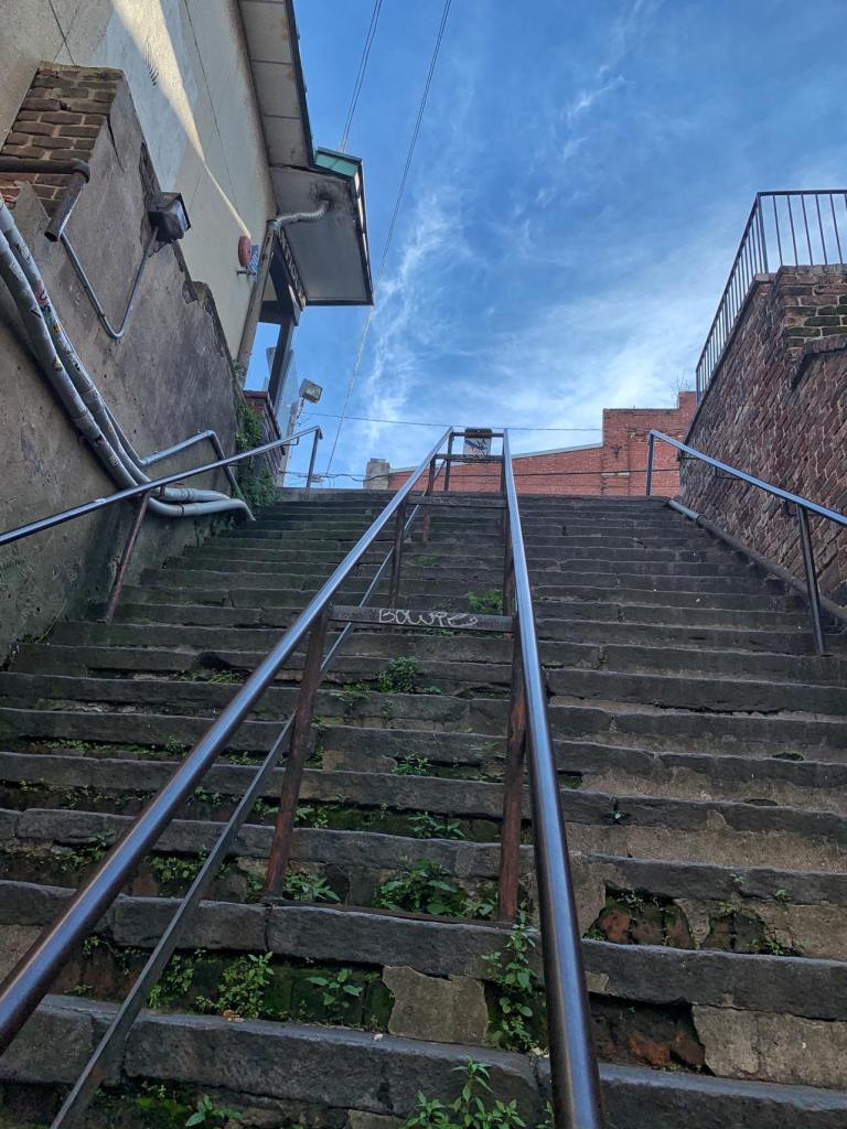 At 1:30 we hiked out to have Flynn’s desired McDonalds lunch before walking along River St.