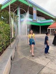Zac and I had gone our own way after the others decided to start repeating rides. We saw the Popeye barge ride and remember it was fun. We got in with a couple wearing raincoats and got worried. How wet could we get?