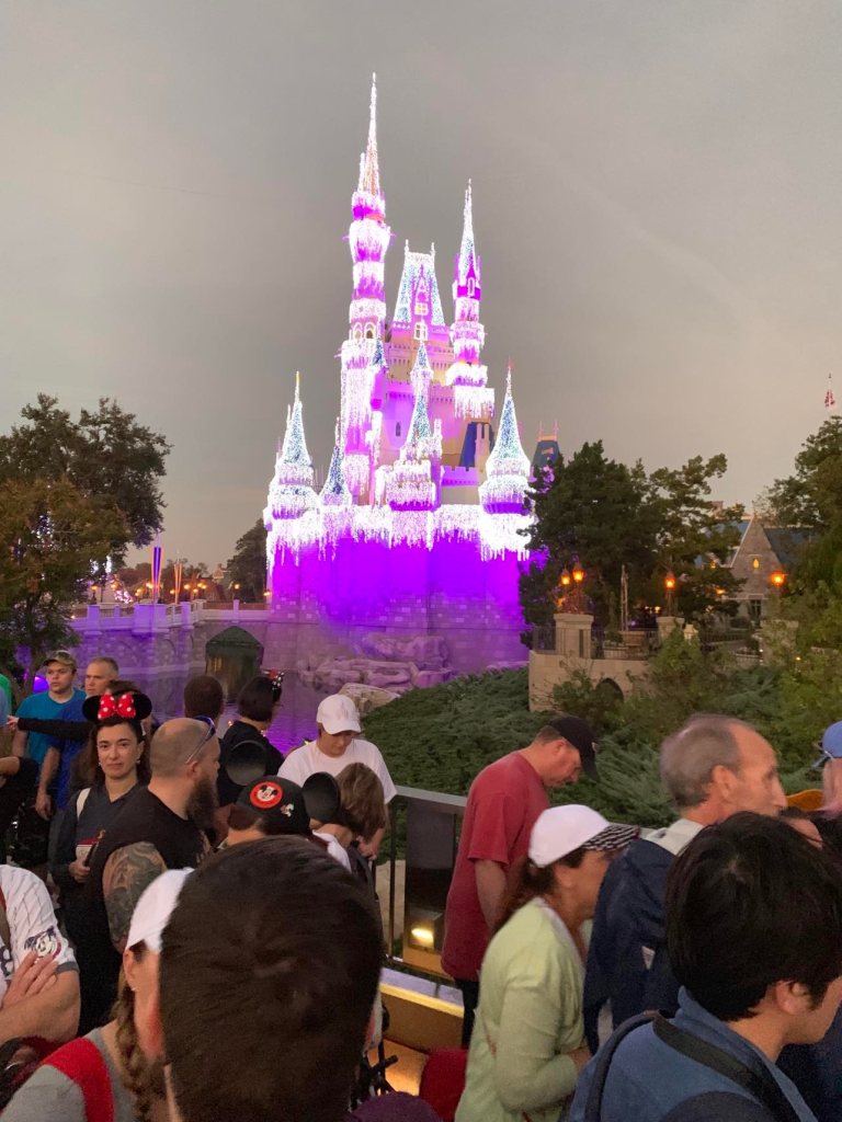 We lined up behind crowds of people in the fog at the Magic Kingdom entrance and I inwardly shuddered.