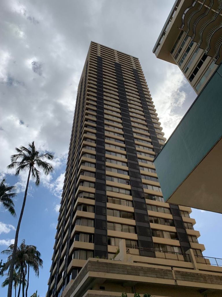 Our Airbnb condo is actually part of a modest hotel, Hawaiian Monarch Hotel. We are on the 38th floor! It is basically 2 bedrooms stuck together, one with kitchen facilities in it. But we are close to everything, very happy!