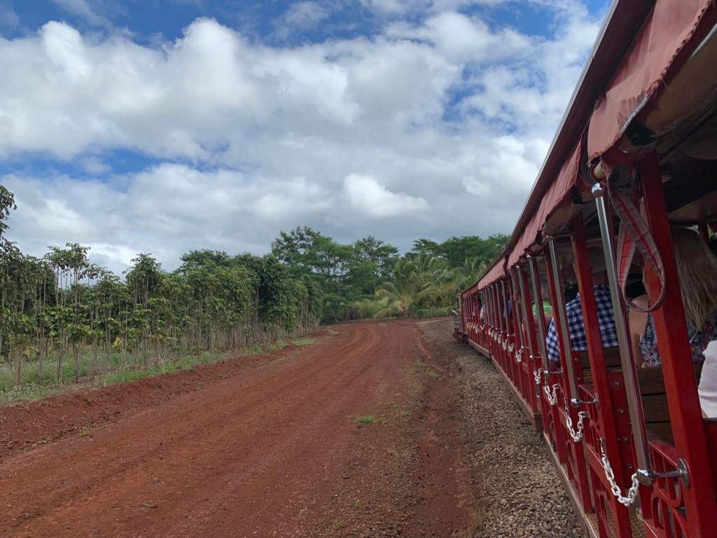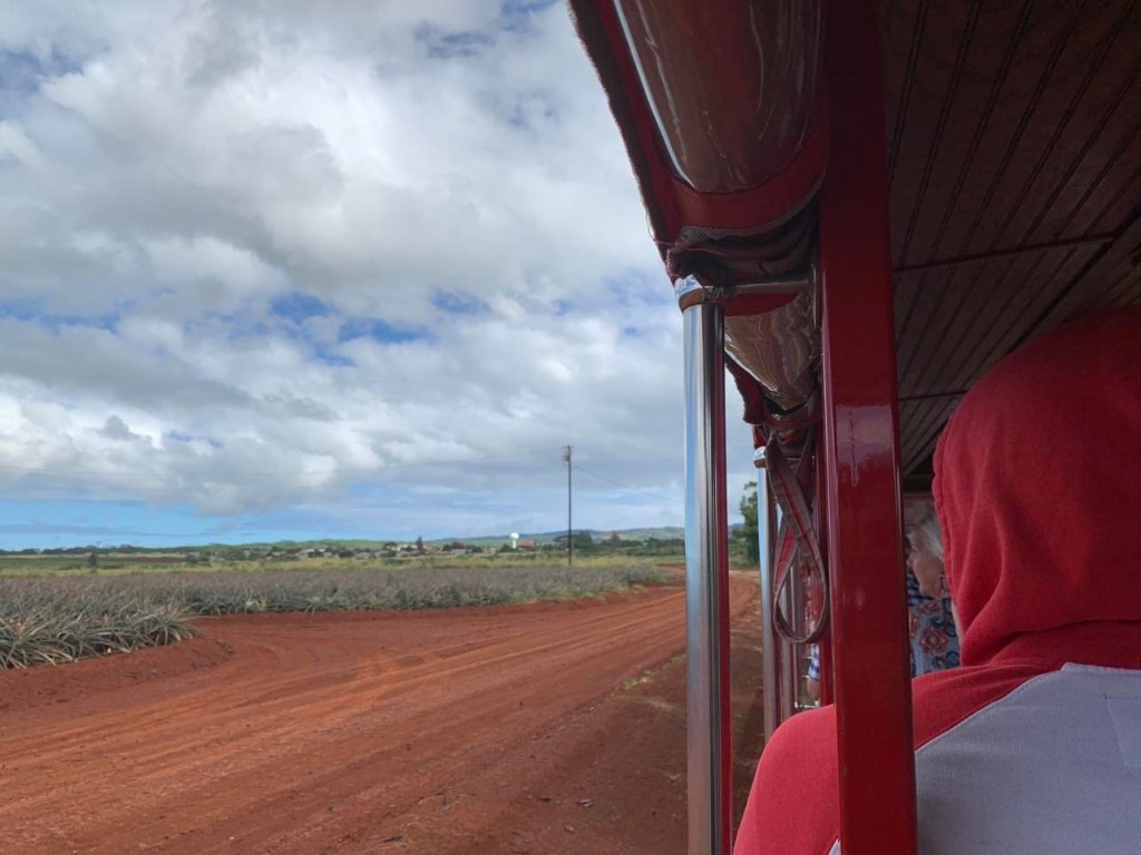 We did the informative train ride first. A recorded voice accompanied by beach tunes gave us the history of the plantation as the train took us through the pineapple and other crops.