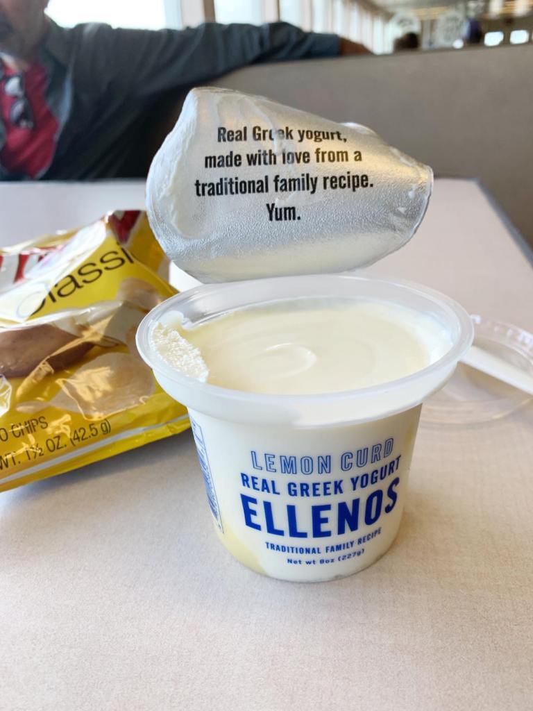 On board I found the famous Ellenos yogurt that I was planning to try at the Pike Place Markets, and in what I assume will be my favourite flavour: lemon curd.