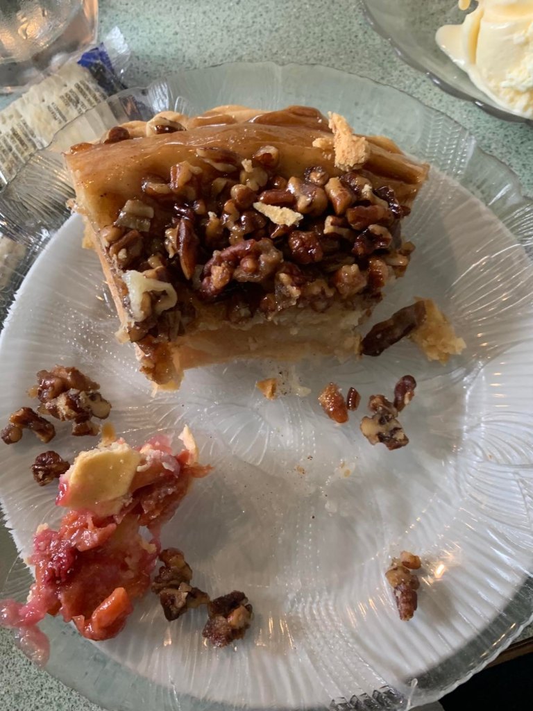 I ordered the upside-down apple and pecan pie and it turned out to be that day’s best choice.