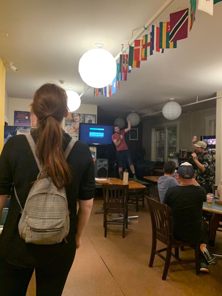 Thank goodness for the bad karaoke going on around me to keep me laughing.