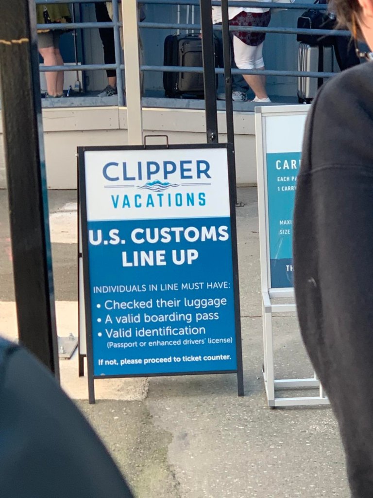 Once we docked, I quickly found my checked luggage and headed towards the second customs counter. I had been told by the first customs guy that on the Seattle side, the customs check would be a half hour interview.