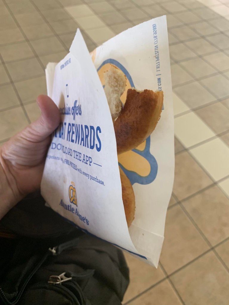 I stumbled into an Aunty Anne’s pretzel before finding Bath & Body Works. Not quite as salty as I like but still so very delicious.