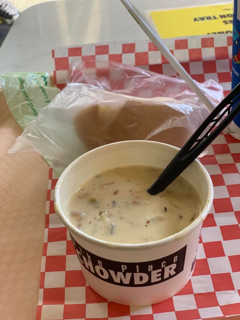 A sneaky second lunch of CLAM CHOWDER (!!!!!!