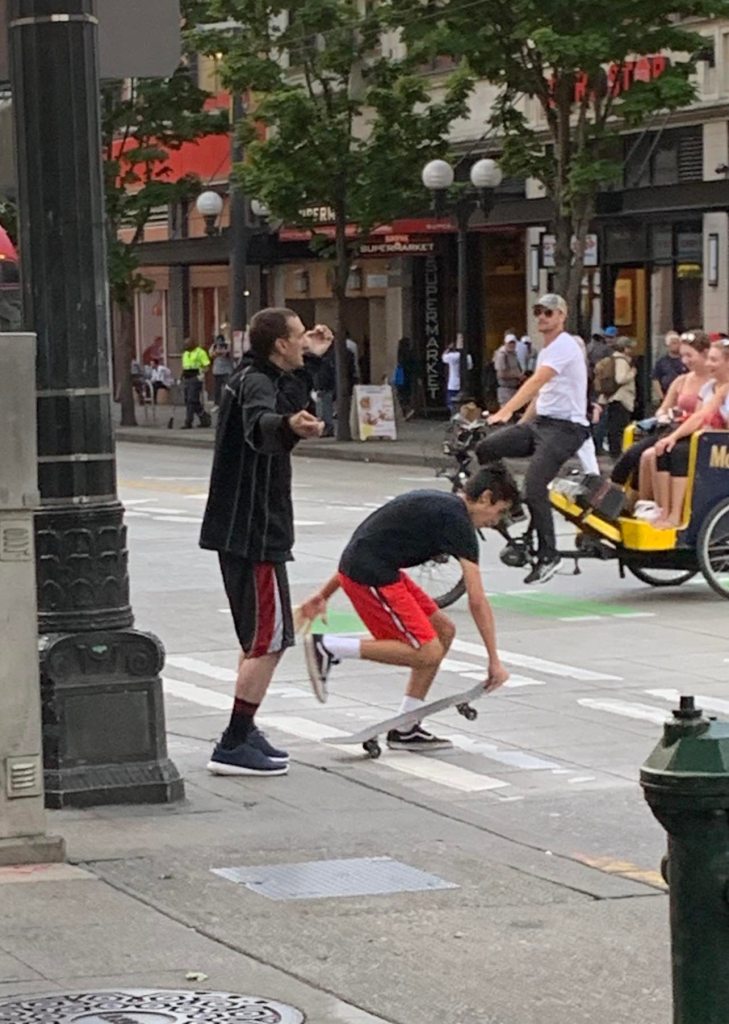 Thankfully a bystander stepped in and steered the girl away from the fray. She seemed stoned, eyes rolling around, moving like she was in a trance.