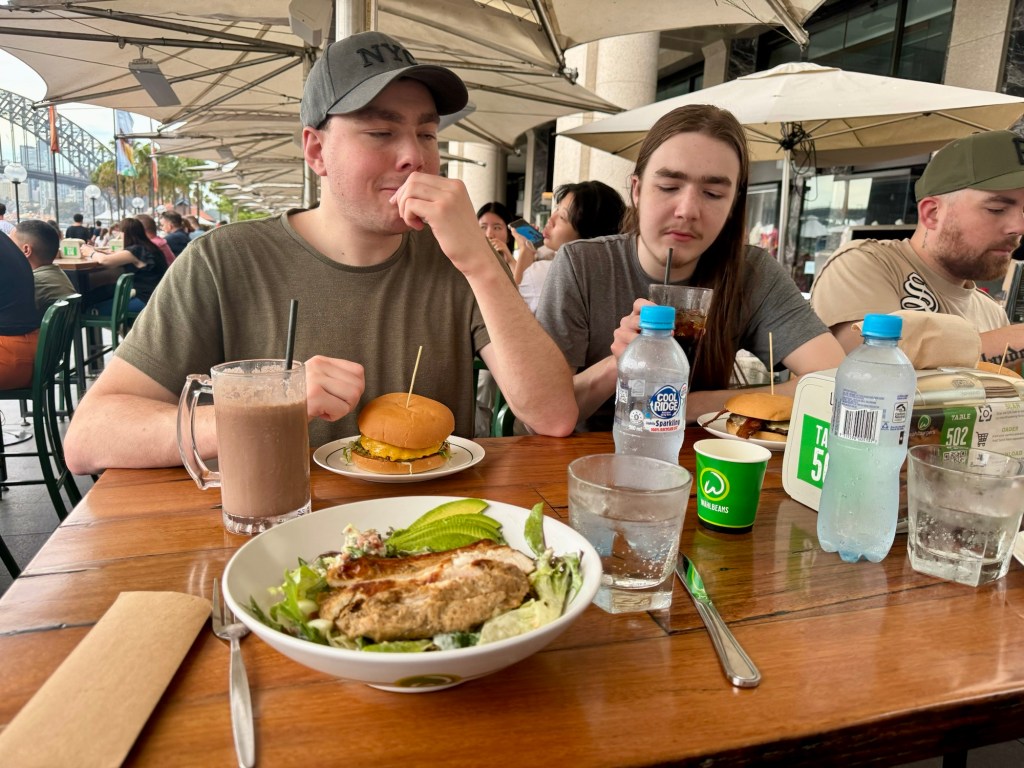 I didn’t hold out much hope for an outdoor Quayside table at Walburgers as they don’t take bookings, but we got one with a beautiful view out across the Harbour bridge.