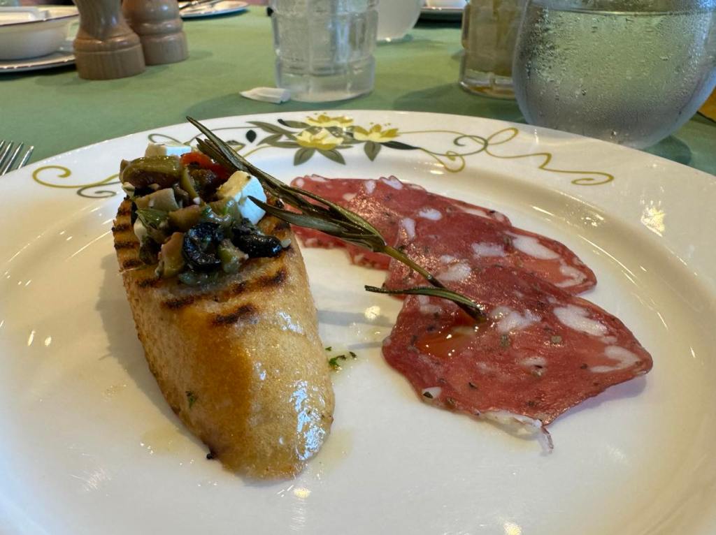 This was the meal of our cruise so far. A bruschetta- crunchy with olive oil and goats cheese and maybe some marinated bits of tomato. I could hae scoffed down five of these scrumptious delights.