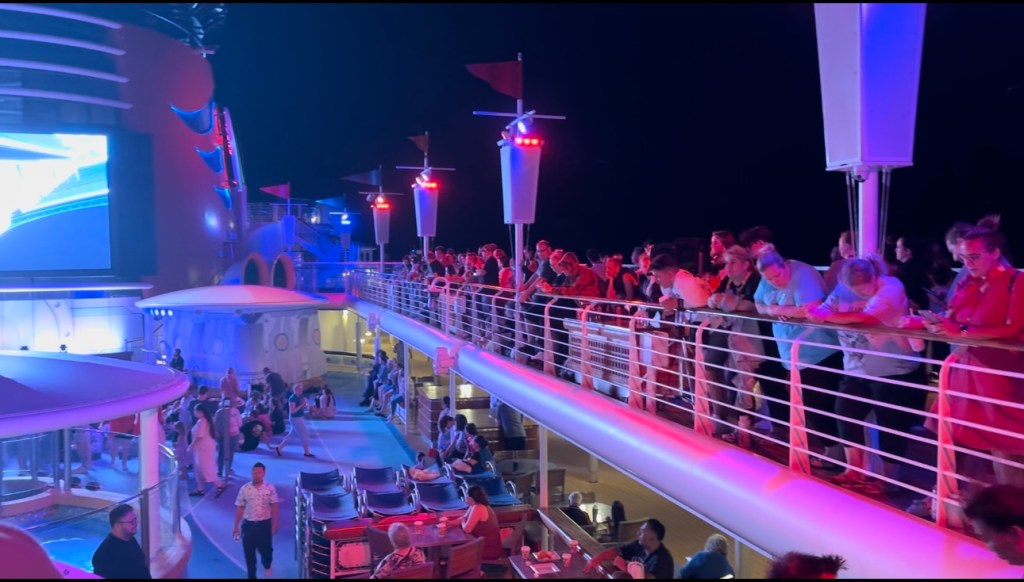 I went up to deck 10 to save us all good seats for the marvel show, but the back part of the deck that we had been told wouldgive us the best view of the show was blocked off.
