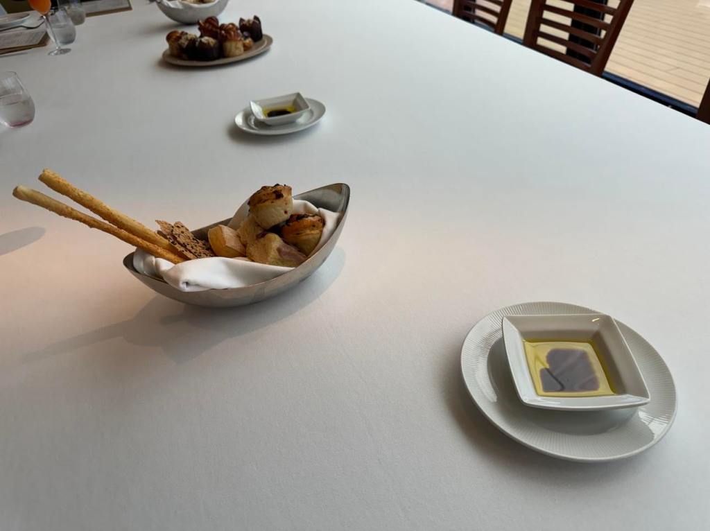 I will wax on about the breads in a minute, but see the view of the deck in the image below? Well, that was our view. And because of it being in a far corner of the top deck, it was like this most of the time. However, I found it very amusing every time guests departed. They would walk past, but because of the huge winds, it looked like they were infants learning to walk for the first time ever. It was kind of hilarious and the glazed windows meant they never realised we were able to see them. When we left, we chose not to put on a show, and we went down the elevator. 😛
