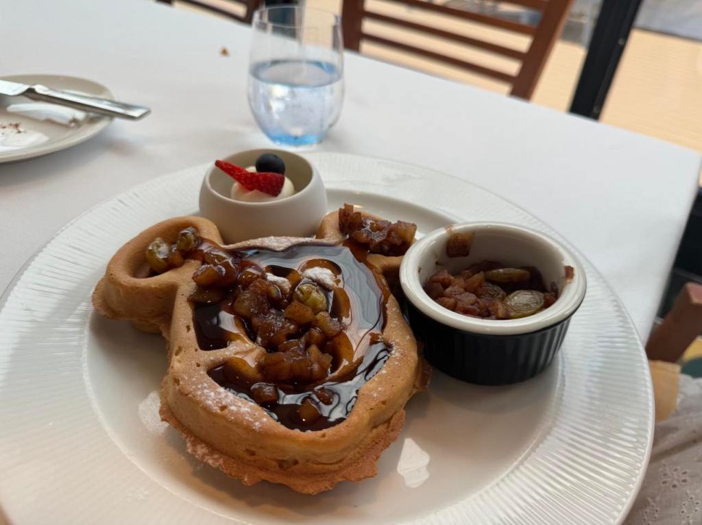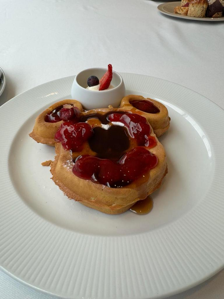 It was funny watching him dress Flynn’s strawberry waffle with dollops of strawberry sauce and maple syrup. The 18 year old can be a bit of a picky eater at home. But he surprised us all by eating every bite!