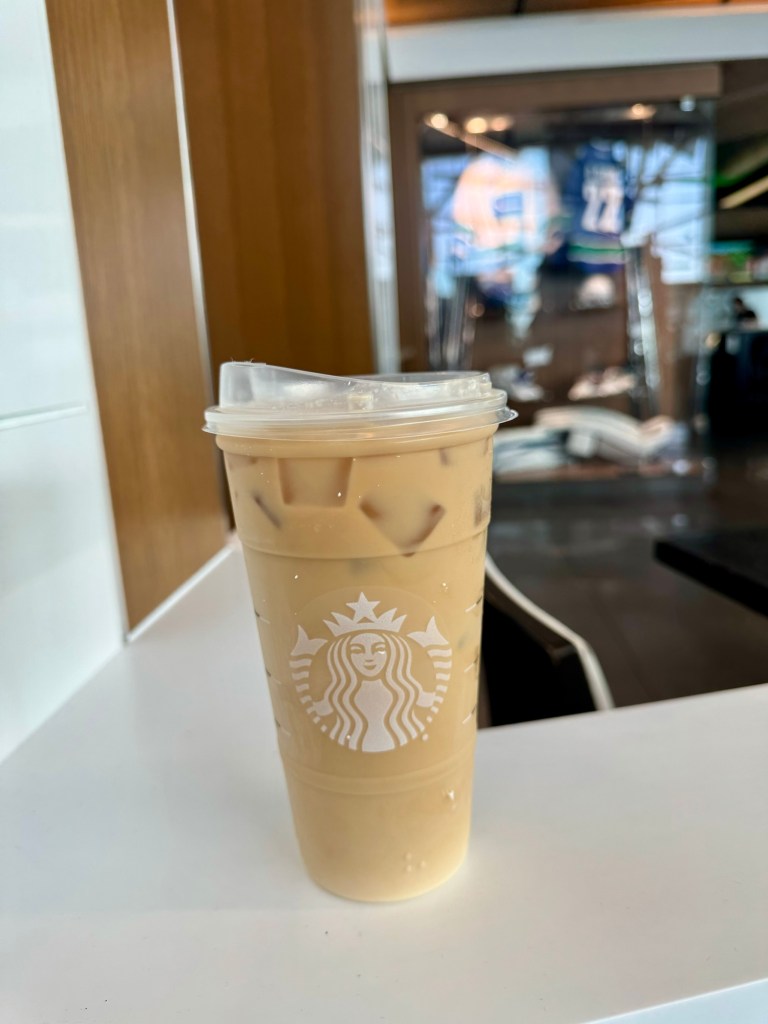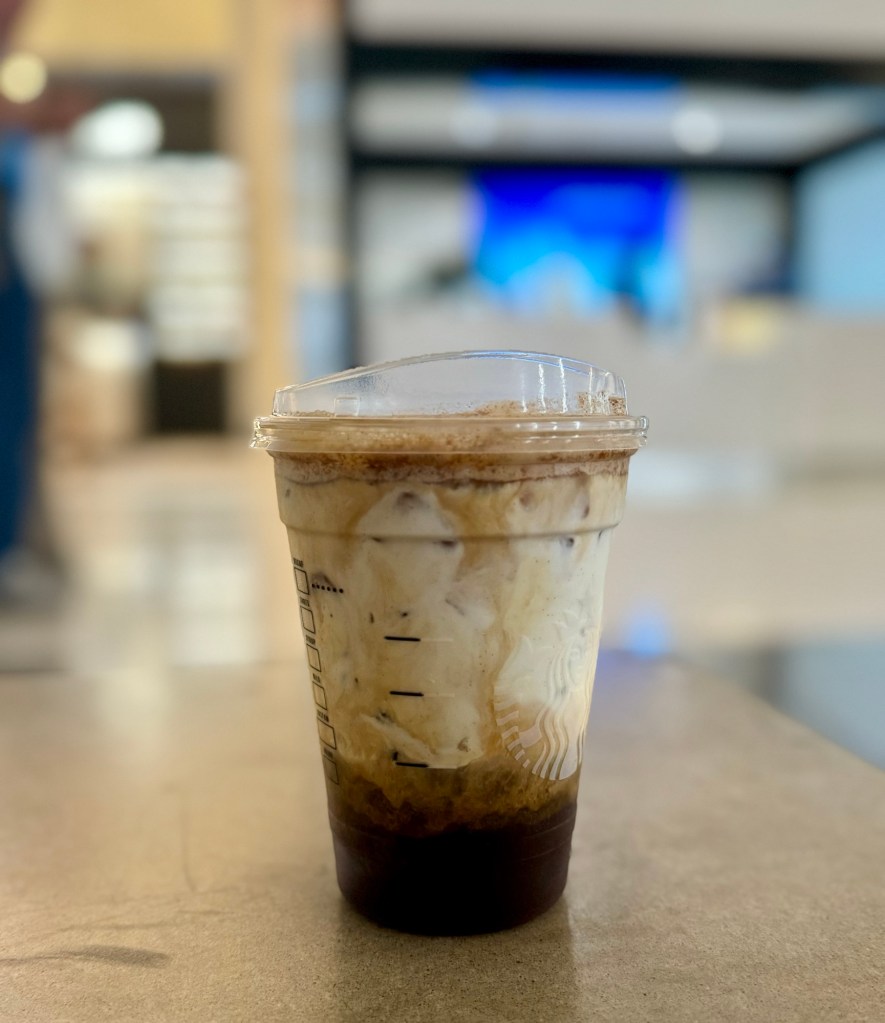 Iced -brown -sugar espresso on skim, with 1 pumps of brown sugar syrup, 2 pumps sugar free vanilla, and a splash of heavy cream . There was a hint of cinnamon and I wasn’t mad about it