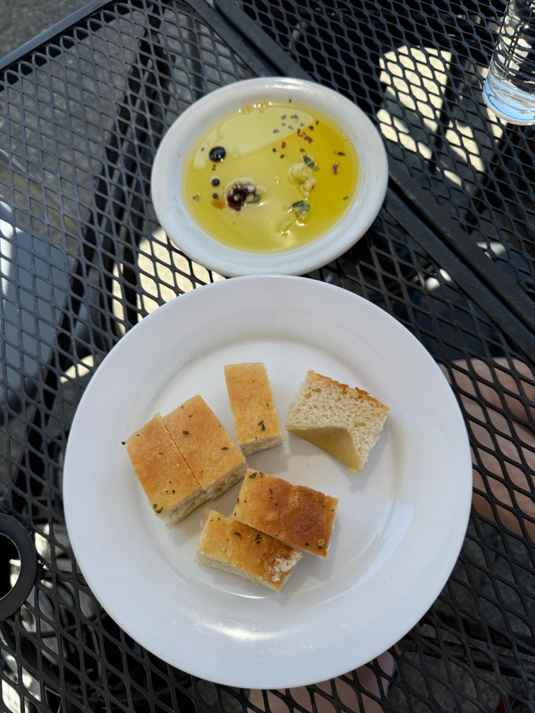 We enjoyed lunch on the deck of an Italian restaurant.