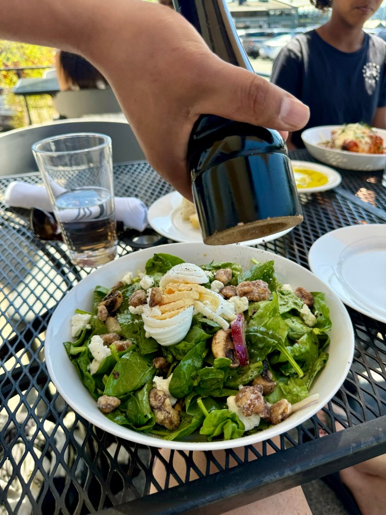 My salad of candid walnuts, mushroom and goats cheese was so scrummy.