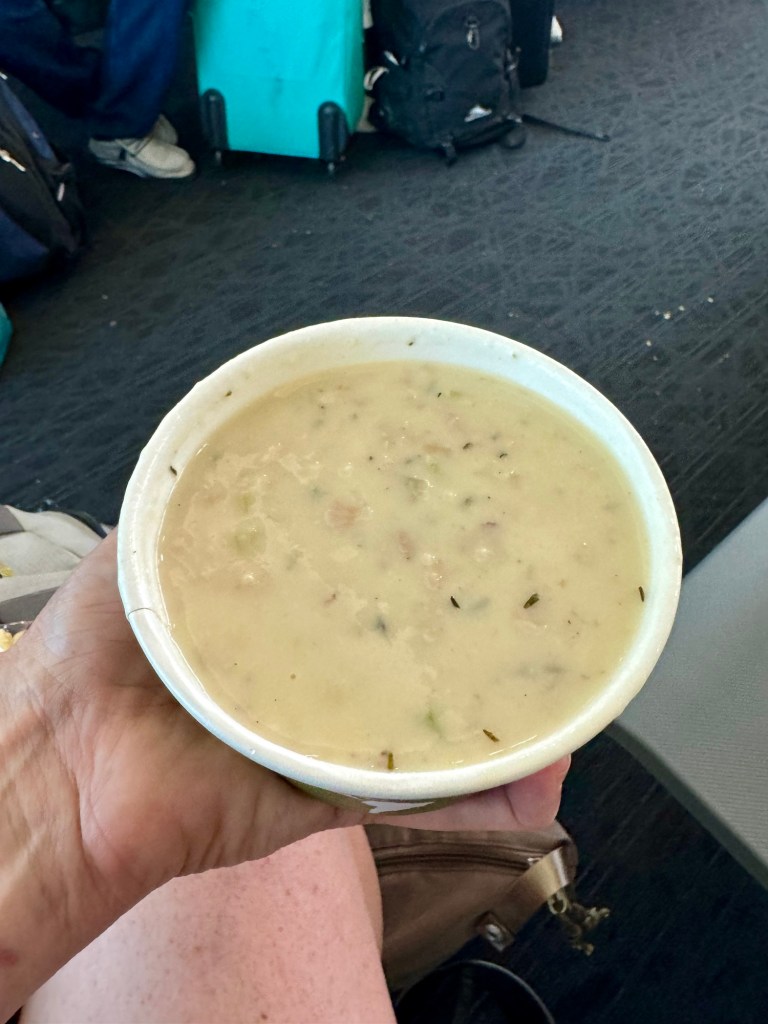 My flight was delayed 15 minutes so I honed in on some delicious Seattle chowder for lunch.