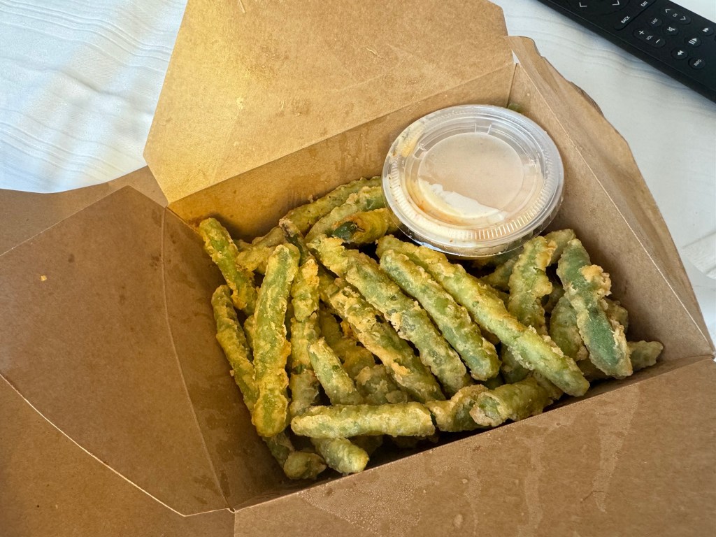 I slumped off to my hotel room, changed into flip flops, mobile ordered some battered beans from the local grill Tangaroa Terrace and in the way to grab them, I put my dirty clothes in a wash cycle in the laundry.