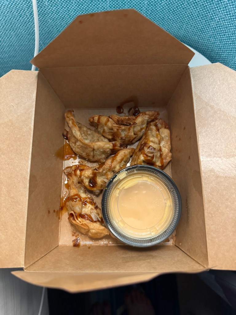 I mobile ordered some pork potstickers as I made my way home and ate them in the hotel.
