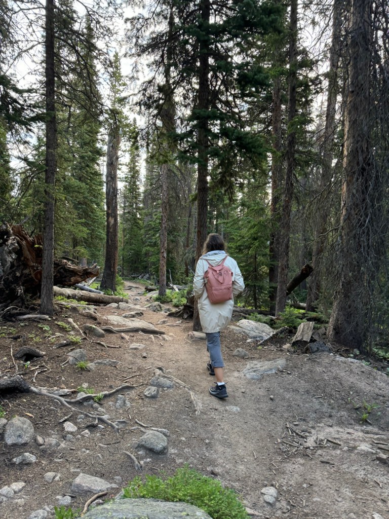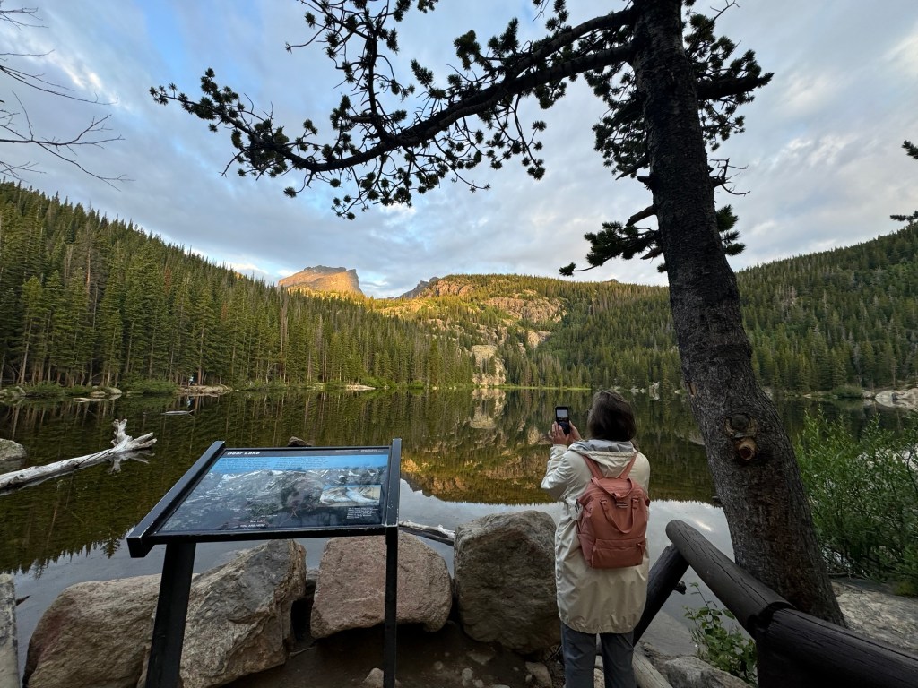 Later, as we admired Bierstadt lake’s beauty in reverent silence, we heard and then saw three very loud stomping tourists heading our direction and felt a little indignant