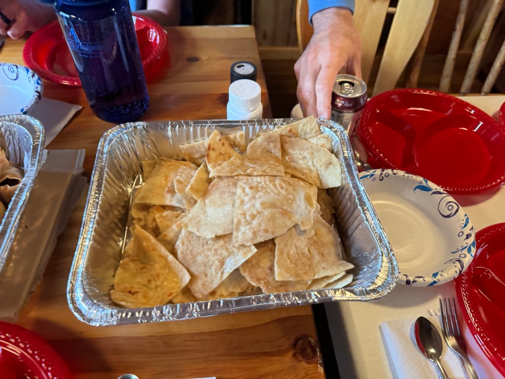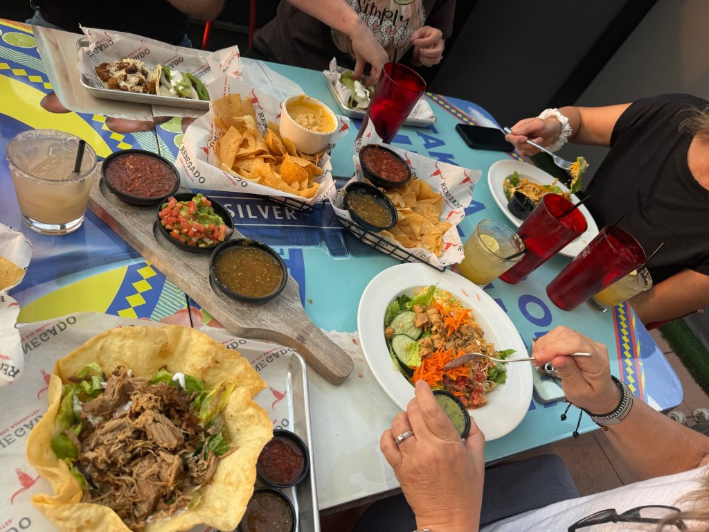 That was closed, so we went with Mexican instead. I didn’t know that complementary chips and salsa are a thing in the States with Tex Mex, so I ordered corn chips and dips. Look at all our corn chips.